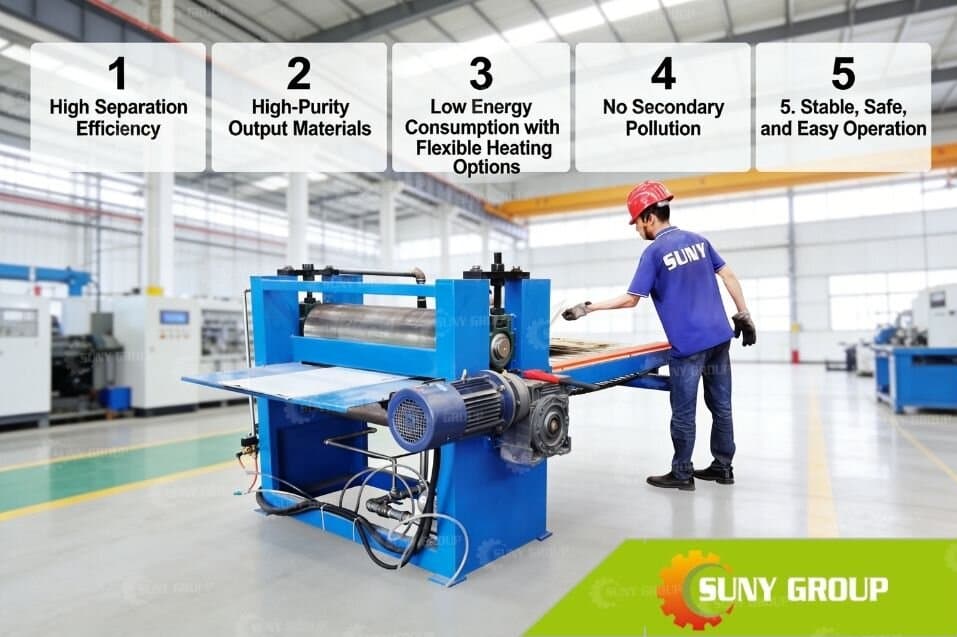 We specializes in recycling machinery and solid waste treatment solutions, offering aluminum-plastic separation, paper-plastic recycling, diaper recycling, ACP panel stripping and more. We provide customized turnkey systems with raw material testing, installation, training, and strict quality control to ensure stable performance and high recovery rates for long-term customer value.