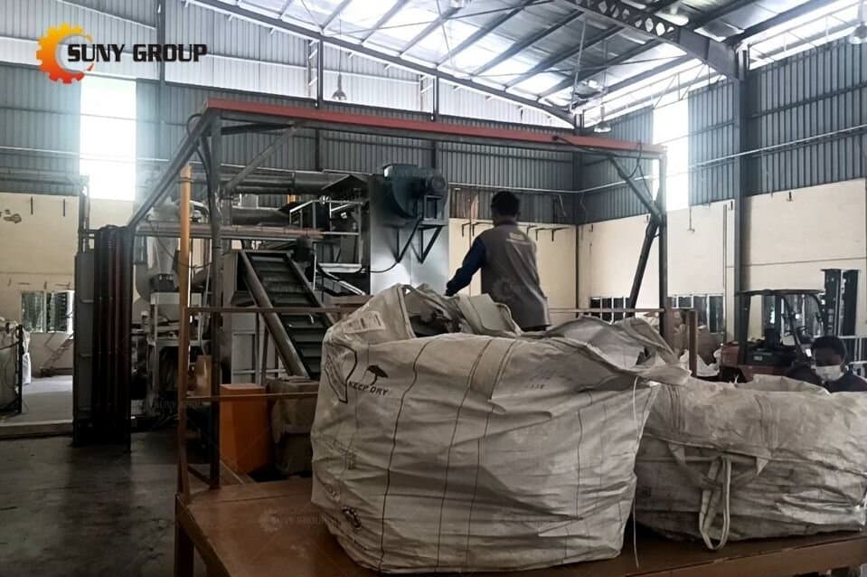 In South Korea, a long-term partner of SUNY GROUP expanded its recycling capacity with a large-scale aluminum plastic composite recycling line. The system was designed for high-volume processing of aluminum composite panels and laminated materials. It features a double-shaft shredder for pre-crushing, followed by a knife crusher that reduces the material to around 10 mm. The finely ground mixture is then processed through a water-cooled turbo grinder and separated via a rotary screen and electrostatic separator. This setup ensures efficient size reduction, consistent purity, and full recovery of both aluminum and plastic.