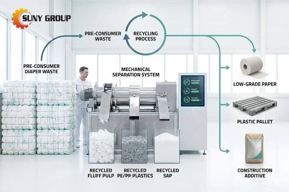 The Baby Diaper Recycling Machine offers an innovative, eco-friendly solution for processing expired or defective baby diapers and sanitary napkins. By efficiently separating SAP, fluff pulp, plastic film, and non-woven fabric, this advanced system transforms waste into valuable reusable materials. Designed for high purity, zero pollution, and strong economic returns, it helps manufacturers reduce waste, recover resources, and contribute to a sustainable circular economy.